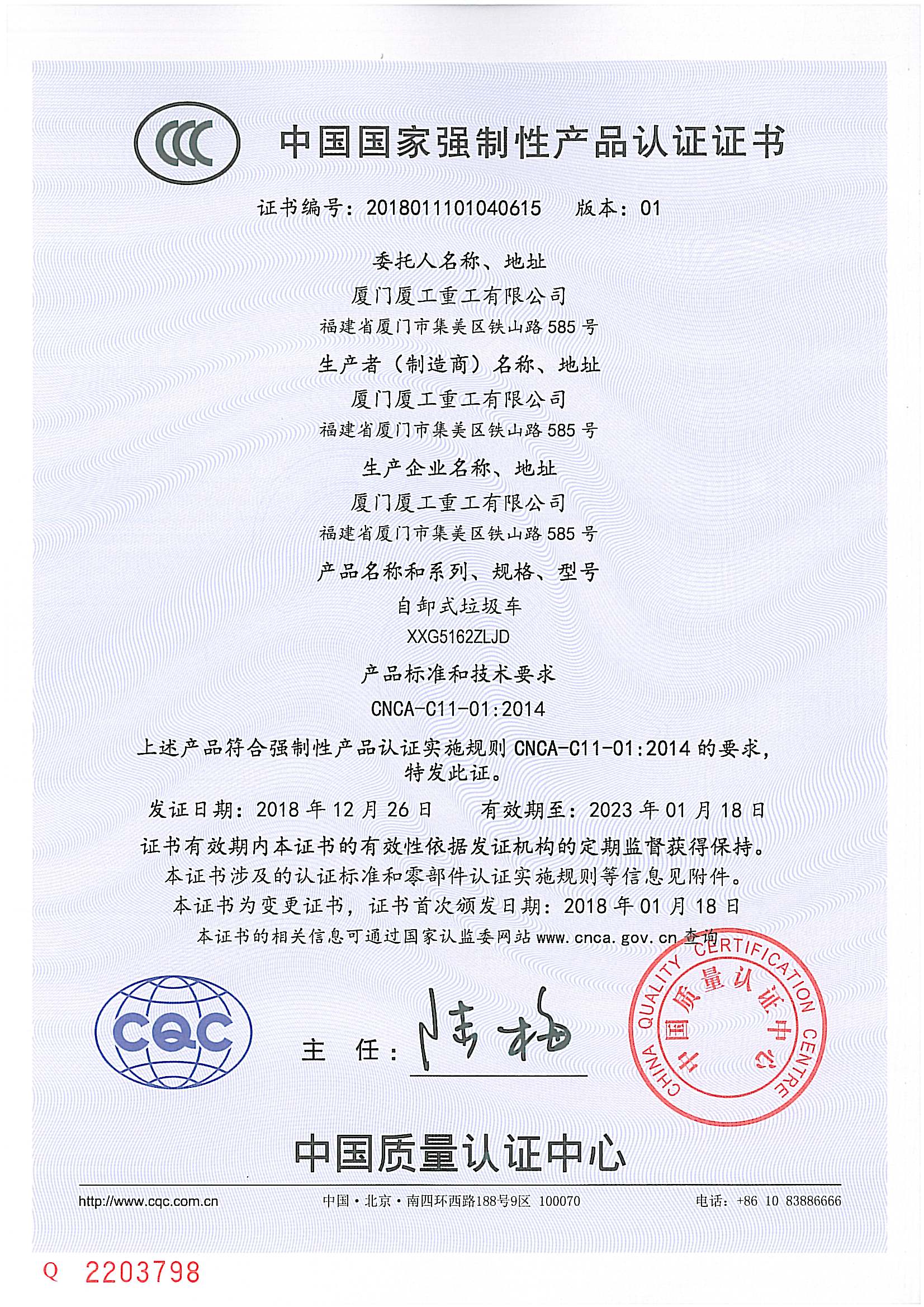 3C证书-自卸式垃圾车XXG5162ZLJD